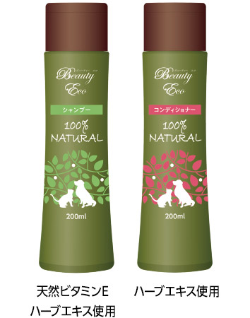 100%植物性のシャンプー&コンディショナーです。安心して肌の弱いペットにもご使用いただけます。