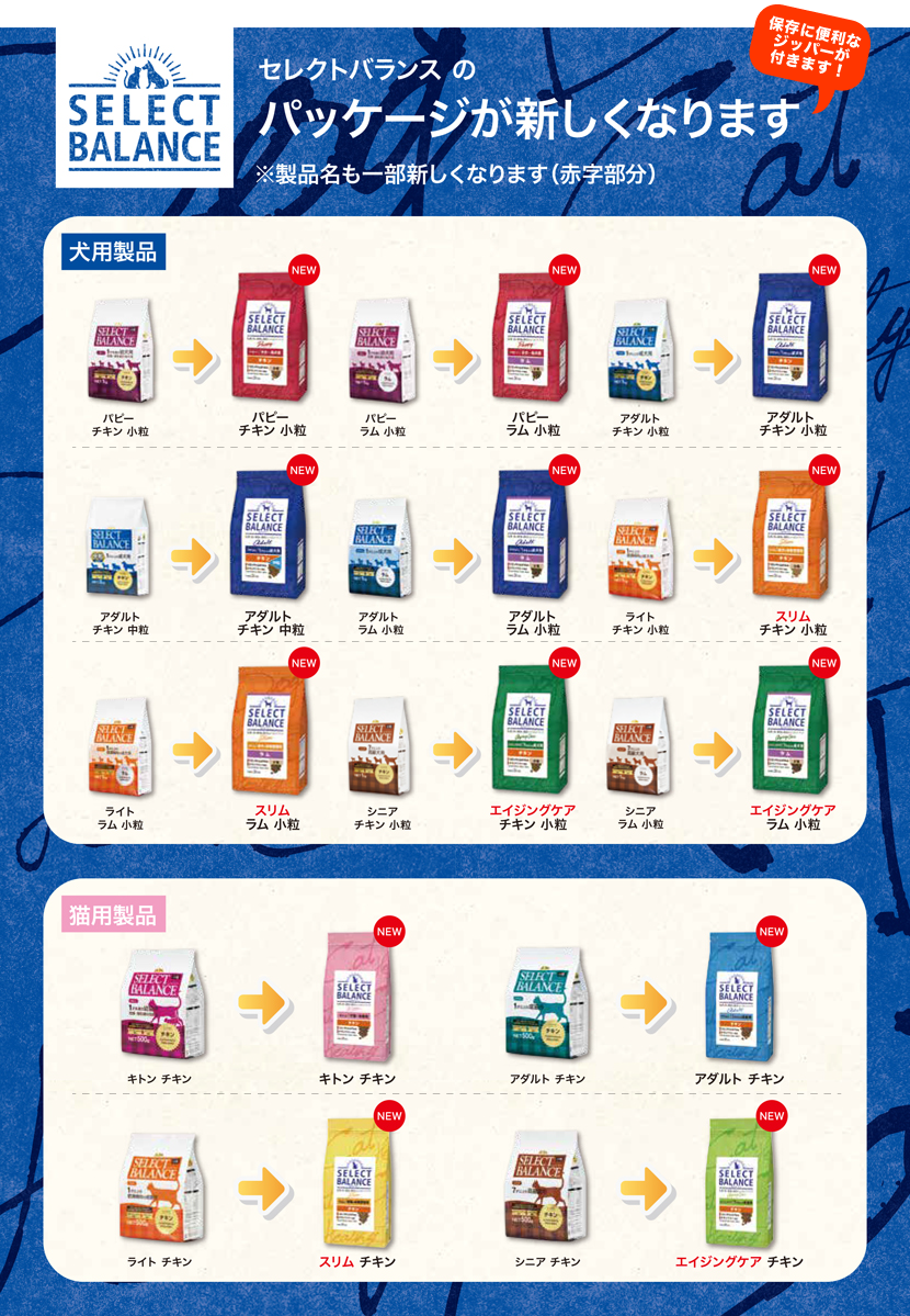 この秋、セレクトバランスのパッケージが新しくなります。新旧パッケージ一覧はこちらになります。